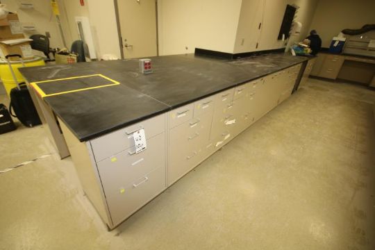 Hamilton L-Configuration Partial Wall Mounted and Partial Double Sided Acid Resistant Top Laboratory Cabinet System - Some Sections Aprox. 72" W and 35" W and Some Sections Aprox. 114-1/2" L and 241" L, Overall Height 36" H (Located Lab #2) (NOTE: Overhead Glassware Racks Not Included)