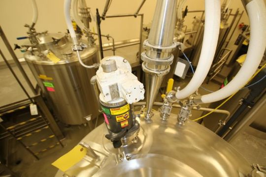 2003 Lee 250 Gal. Dome-Top S/S Single Wall Kettle, Model 250 DBT, S/N 29058-3-6 with 316L S/S Interior, Lightnin Dual 3-Prop Mixer, Input 1.95 hp, Ration 5, Mounted on Load Cells, Mettler Toledo Panther Digital Read-Out includes Surrounding Above Valves and Filter, Sightglass, Pressurized Lid, West Lock Bottom Control Valve and Ashcroft Gauge (Overall Tank Dimensions Aprox. 42" W x 90" H) (Kettle #TK 340901) (LOT LOCATED IN OWINGS MILLS, MD)***STEV***