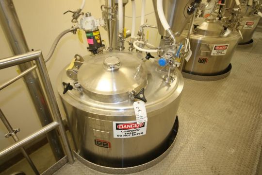 2003 Lee 300 Gal. S/S Processor Reactor Kettle, Model 300U, S/N 29058-1-3 with 316L S/S Interior, Dome-Top Design, Bottom and Side Jacketed, Pressurized Lid, Lightnin 3-Prop Mixer, Input Power 1.2, 10 Ratio, Asepco Bottom Valve, MAWP Internal 5 psi @ 228 Degree F, MAWP Jacket 14.7 psi @ 250 Degree F, MDMT Internal -20 Degree F @ 5 psi, MDMT Jacket -20 Degree F @ 14.7 psi, Mounted on Load Cells, Mettler Toledo Panther Digital Read-Out, Rosemount Flow Meter including Surrounding Above Valves and Filter, (Overall Dimensions Aprox. 50" W x 90" H to Top of Tank) (Processor #TK 340301) (LOT LOCATED IN OWINGS MILLS, MD)***STEV***