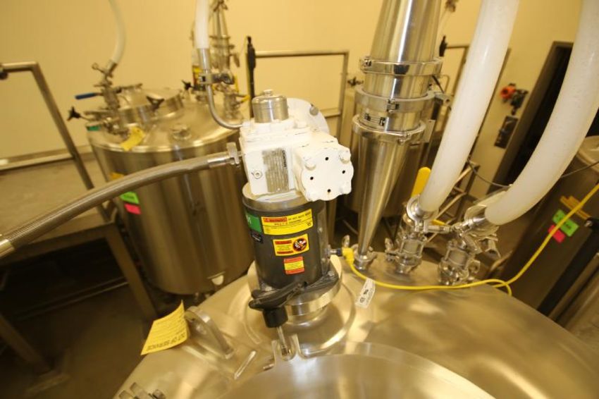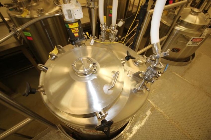 2003 Lee 250 Gal. Dome-Top S/S Single Wall Kettle, Model 250 DBT, S/N 29058-3-5 with 316L S/S Interior, Lightnin Dual 3-Prop Mixer, Input 1.95 hp, Ration 5, Mounted on Load Cells, Mettler Toledo Panther Digital Read-Out includes Surrounding Above Valves and Filter, Sightglass, Pressurized Lid, West Lock Bottom Control Valve and Ashcroft Gauge (Overall Tank Dimensions Aprox. 42" W x 90" H) (Kettle #TK 340801) (LOT LOCATED IN OWINGS MILLS, MD)***STEV***