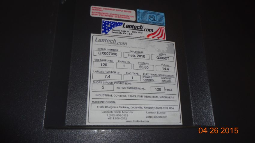 2010 Lantech Model Q300XT Stretch Wrapper Serial No. QX007090 with two piece ramp and auto cutter for the wrap plastic(LOCATED IN IOWA, RIGGING INCLUDED WITH SALE PRICE)***EUSA***