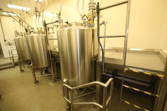 BULK BID LOT #14 TO LOT #17 - 3-TANK S/S KETTLE SYSTEM INCLUDES (3) LEE 250 GAL. S/S KETTLES WITH OPERATORS PLATFORM (LOT LOCATED IN OWINGS MILLS, MD)***STEV***