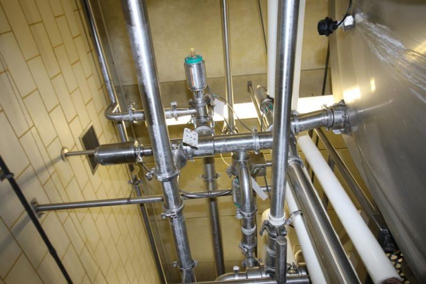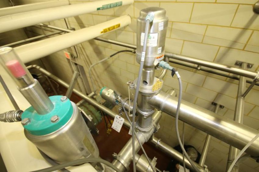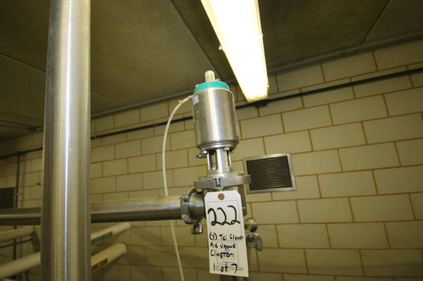 Tri-Clover Milk Fill and CIP Air Valve Cluster for Vat #1 - Lot #216 including: (2) 2" Model 761, (1) 2-1/2" Model 761 and (1) 4" Model 161 Stop Valves; (1) 4" Model 761 and (1) 4" Model 161 Divert Valves and (1) Model 761 Crossbody/Divert Valve (Located Above Vat)
