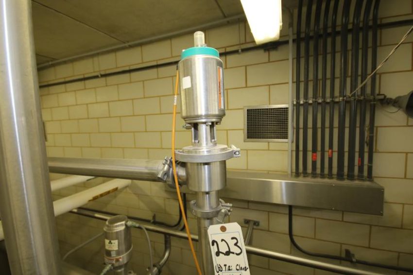 Tri-Clover Milk Fill and CIP Air Valve Cluster for Vat #3 - Lot #217 including: (1) 2" Model 761 and (2) 2-1/2" Model 761 Stop Valves; (1) 2-1/2" Model 761 Crossbody/Divert Valve; (1) 4" Model 161 Crossbody and (1) 4" Model 161 Divert Valves (Located Above Vat)