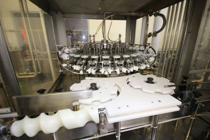 Federal 36-Valve S/S Rotary Filler, Machine #2065ESW4/36/15GR1253 with 15-Head Screw Capper, Cap Feeder with Sanitizer Cap Chute and Elevated Cap Hopper, Complete Enclosure with Hepa Air Filtration System, Allen Bradley SLC-500 DH485 Link Coupler, Allen Bradley SLC 5/05 CPU, (2) PowerFlex 40 VFD’s, Allen Bradley PanelView Plus 1000 Touchpad Display and Anderson AJ300 Chart Recorder, S/N 1020023, Set-up with 10 oz. Change Parts, Ran 38 ml JBD Caps, Additional 14 oz. Change Parts, Ran 180 BPM to 200 BPM