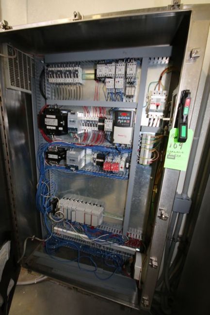 Control panel for chemical system, Luminite Sanitary Level Transmitter, New Ball Bearings – LifterRoller, New Canister Seal Ring, Valve Spacers, Flat rubber, Valve Seal Rings, Vent Tube Seal Ring and O-Rings, VFD – Motor Drive 2HP, Powerflex40 -600VAC, Regulator Box, Chart Recorder Box, Throttling Valve, Divert Valve, Shut Off Valve, Chemical Supply System, Tube Clamps, Bowl Raising Screw, Bearing Spacer, Truarc Ring, Pressure Relief Plug, Retaining Ring, Cap Applier Brace, Support Post for Cap Applier, Level Probe, Crossover pipe, Fluid Level 8 Pin Cruozet Controller, CIP Piping including Circulation Loop, Throttling and Shut Off Valve, Flex Hoses at Filler Inlet, Spray ball Connections w/Swivel Joint Clamps, (2) Conductivity Sensors, Sanitary Air Relief Valve for CIP Pump, Automatic Divert and Shutoff Valves w/Manual Isolation Ball Valves for the Addition of Water Flush & a MAG Flow Meter, Proximity Interlock Sensor at the Flowverter