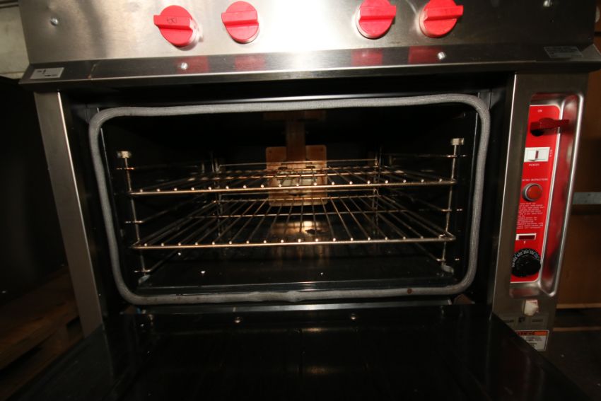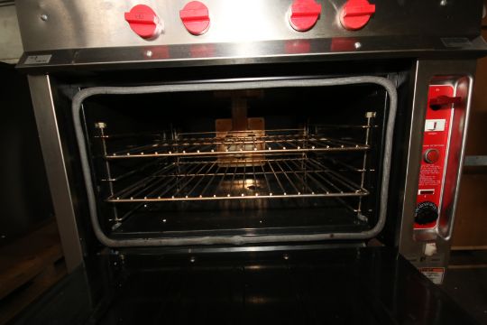 Vulcan 34 Commercial Grade S/S Gas Range, Model GH45C, S/N 48-1631497 with 4-Burners, 152,000 BTU/Hr. Input, 120,000 BTU Top, Single Phase