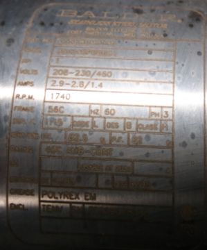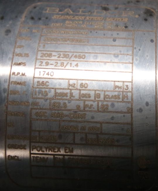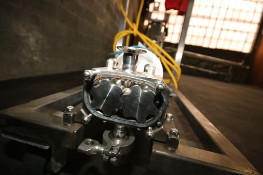 Viking Idex Sanitary Grade Positive Displacement Pump, Model SQI/0004/12, S/N 37796/A/06 with 1-1/2 Clamp Type S/S Head, Baldor 1 hp S/S Clad Motor with Drive, 208-230/460 V, 3 Phase, Mounted on Portable S/S Cart