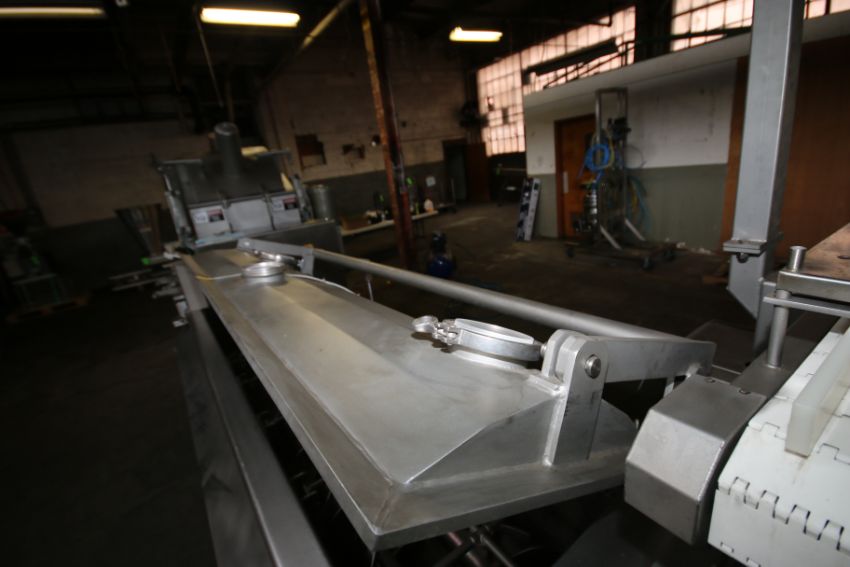 Blentech 300 lb. per hr. Continuous Cooker, Model HT-0906-D, S/N 2008917, All S/S Constructed with Overhead S/S Hopper with Feeder, Pneumatic Hinged Lid, Top Mounted Steam Heated Sprayers, Twin Shaft Stainless Augers, SEW 1/2 hp Drive Motors, 230/460 V, 1140 RPM, 3 Phase, Allen Bradley MicroLogix 1500 PLC Controls with PanelView 600 Touchpad Display, Interior Dimensions Aprox. 6 ft. L x 15 W x 16 H with Aprox. 6 W x 34 L Infeed Conveyor