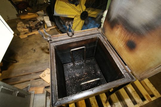 Johnson Gas Appliance Co. Natural Gas Lab Furnace, S/N 4-20-77, Furnace #C-142F4, BTU/Hr. Input 180.000, Opening Dimensions Aprox. 11" W x 7" H x 19" Deep with Quench Tan and (2) Tongs (LOCATED IN IOWA, RIGGING INCLUDED WITH SALE PRICE)***EUSA***