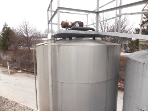 10,000 Gallon S/S Silo with Vertical Agitator, Stainless Steel Interior and Exterior, Top mounted Agitator, Side Alcove with Manhole, Last used in a Beverage Plant, Double Wall Insulated, Last stored Tea Syrup,Dimensions: 10 feet 4 inches diameter x 21 feet tall (Located in North Carolina, $1,500 Loading Fee)***FBEV***