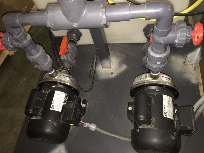 ChemTainer Chemical Mix System with Two Thermally Protected 1HP SS Shaft Drives running Two Dynamic Pumps with independent Controllers with independent floats and Chemical Safe Reservoir (LOCATED IN IOWA, RIGGING INCLUDED WITH SALE PRICE)***EUSA***