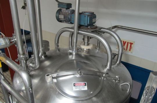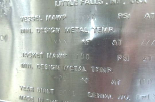 2001 Feldmeier 800 gallon SS Processor, Dome Top Sloped Bottom, Top Mounted Agitator, CIP Spray Balls, Side Wall Baffles, Inlet and Outlet Air Valves, Temperature and Level Probe,100 PSI Jacket, 350 Deg F, 55" Diameter x 127" Height (Located in California)***FBEV***
