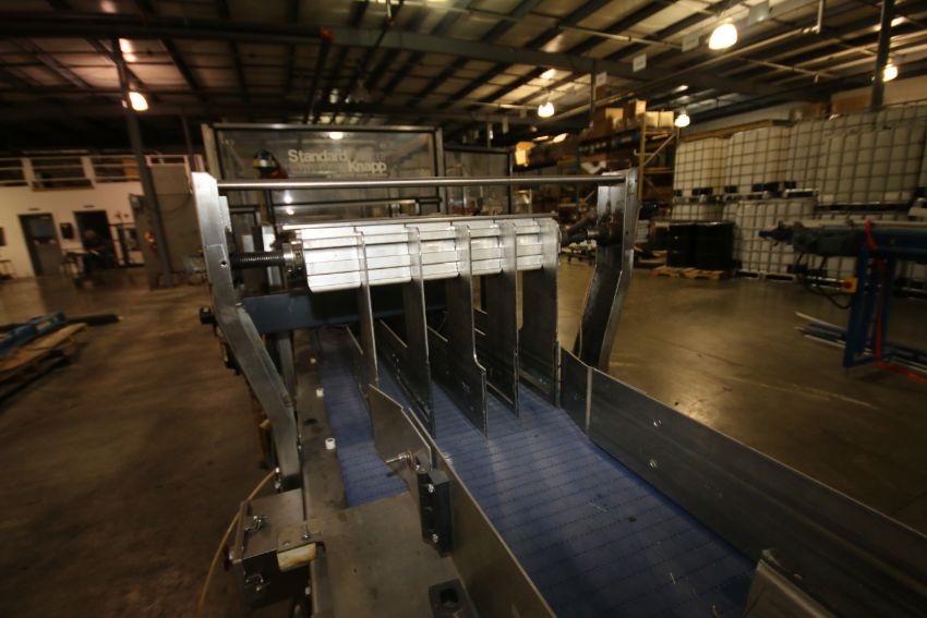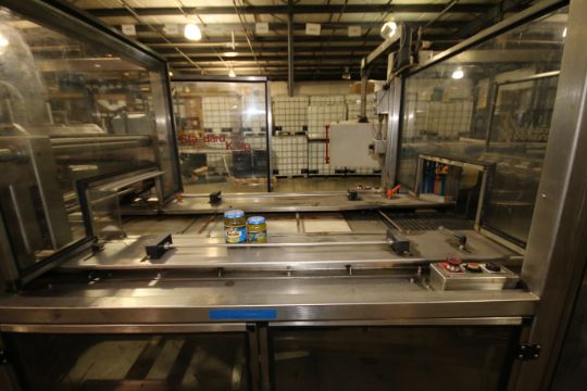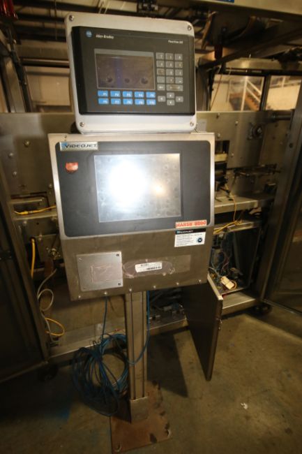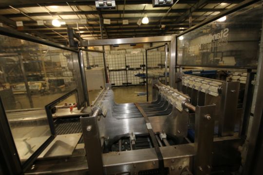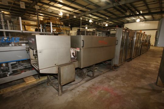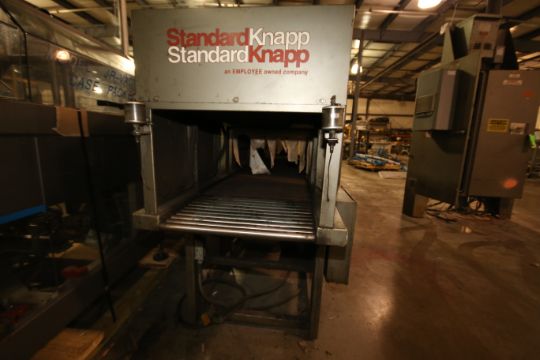 Standard Knapp Drop TrayPacker/Overwrapper/Shrink Tunnel, Type 540, S/N 243 includes Infeed Conveyor with Laner, Nordson Gluer, Marsh 8000 Ink Jet Coder, Aprox. 80" L Shrink Wrap Tunnel with 24" W x 13-1/2" H Opening, Allen Bradley Logix 5561 PLC Controls, PanelView 550 Touchpad Display including 2-Door Control Panel with Allen Bradley 5/30 PLC Controller with VFD's, Overall Dimensions Aprox. 58 ft. L x 5 ft. W x 7 ft. 6" H (Note: Formerly Set-Up To Run 10 oz., 16 oz., 20 oz., 24 oz. 46 oz., 32 oz., 62 oz. and 128 oz. Jarred Pickles) (NOTE: MACHINE TO BE SOLD AS ABSOLUTE AUCTION) ($1,200 load on 1-1/2 to 2 flatbed trucks) (LOCATED IN IOWA) ***EUSA***
