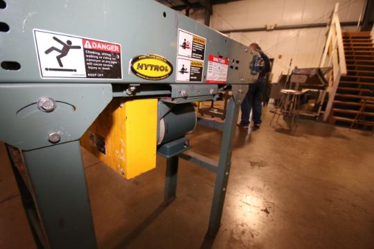 Hytrol 60" L Power Belt Conveyor Section, S/N 464766 with 12" W Chain Link Type Belt includes Drive and Leg Supports ($85 to palletize and load) (LOCATED IN IOWA, RIGGING INCLUDED WITH SALE PRICE)***EUSA***