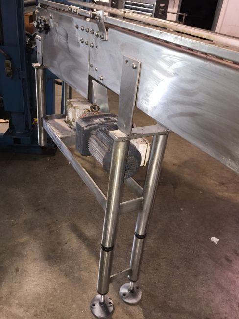 Stainless Steel Conveyor Aprox 12 ft long with 4.5" belting, variable speed SEW drive and stainless steel legs (LOCATED IN IOWA, RIGGING INCLUDED WITH SALE PRICE)***EUSA***