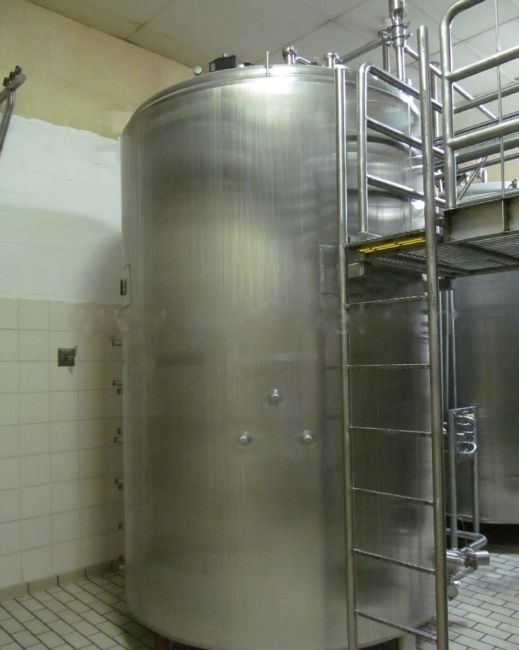 Cherry Burrell 2,500 Gallon SS Processor, Dome Top Sloped Bottom, Top Mounted Agitator, CIP Spray Balls, Side Wall Baffles, Inlet and Outlet Air Valves, Temperature and Level Probe,105" Diameter x 178" Height (Located in California)***FBEV***