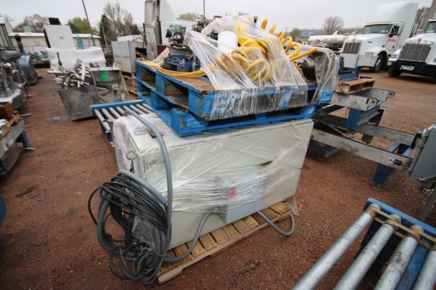 (8) Pc. - IP Automation Skate Conveyor Beds with 51" W x 34" Up to 5 ft. L includes Skid Magazine and Adect Robot Control Panel (Remains of Robotic Palletizer)