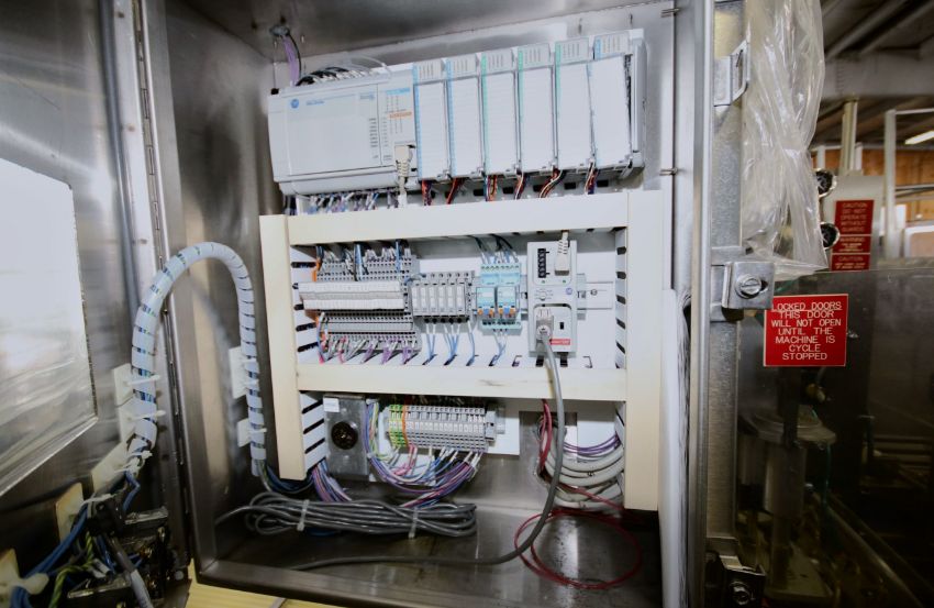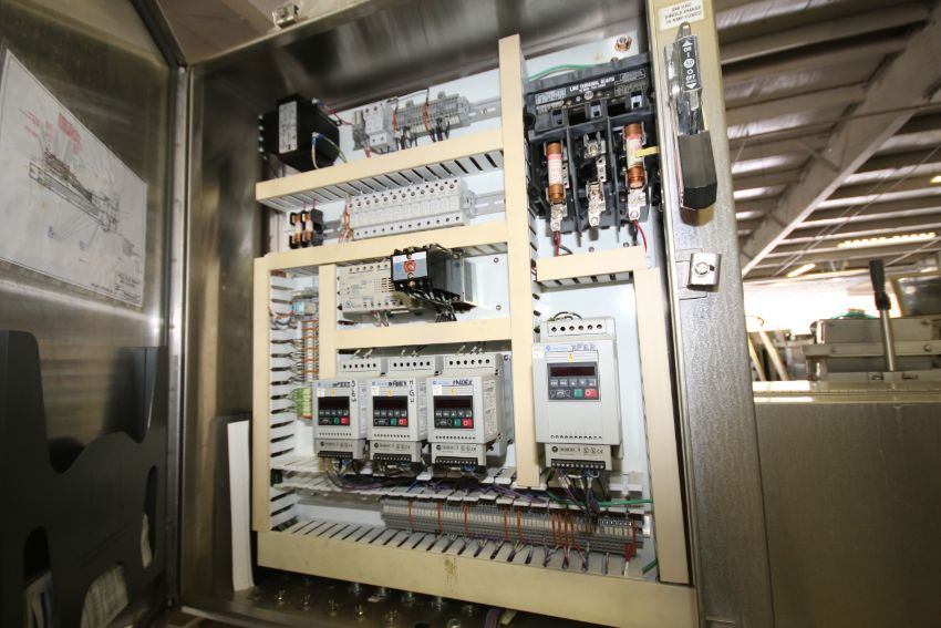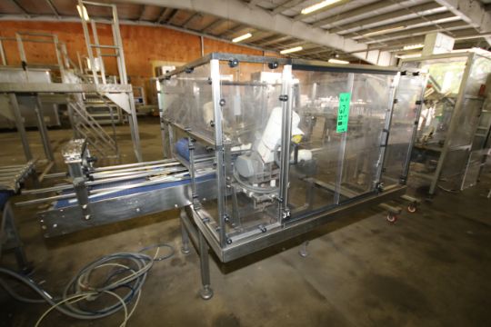 2001 Delkor Spot Packer, Model SP-RH-FL, S/N SP-2067 with Allen Bradley MicroLogix 1500 PLC Controls, VFD's and S/S Frame including 4-Lane Infeed Conveyor (Operated at 240 CPM) (Line #1) (NOTE: Missing PanelView Display)($200 FOB - Additional Charges for ANY Requested Special Packaging/Skidding)