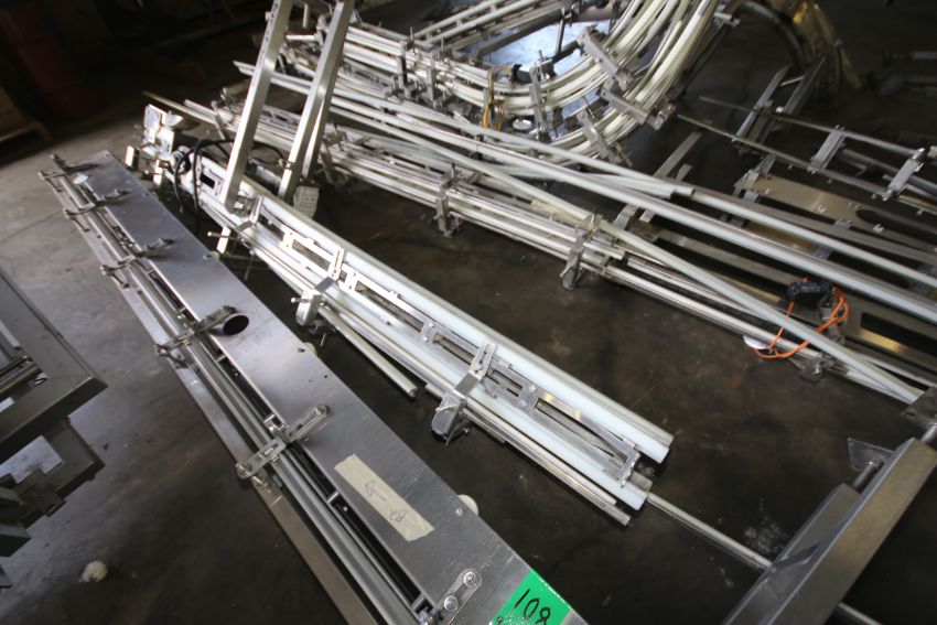 (10) Pc. - Product Conveyor Sections including Straight Sections, Bends and 45 Degree Sections - Aprox. 4 ft. L to 14 ft. L, Most 4" W includes (1) Drive and (1) Roll of Conveyor Chain($200 FOB - Additional Charges for ANY Requested Special Packaging/Skidding)
