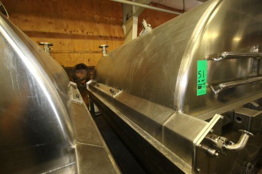 2008 Milk Project Aprox. 6,000 lbs. Horizontal Enclosed Jacketed S/S Cheese Vat, Type 3000LT, S/N C0718-A2 with Knives, Discharge Valves (Located at LaLa Facility), Safety Guards, 2 hp Drive Motor, Aprox. 11 ft. L x 40" W x 45" H S/S Operator's Platform with Stairs, Safety Rails and Plastic Grating including Control Panel with Siemens PLC Control ET200S, (2) Telemecanique VFD's and Simatic Touchpad Display (Aprox. Dimensions 80" H x 6 ft. W x 9 ft. 4" L)(Milk Capacity Aprox. 6,880 lbs.)(Vat #2)($450 FOB - Additional Charges for ANY Requested Special Packaging/Skidding)