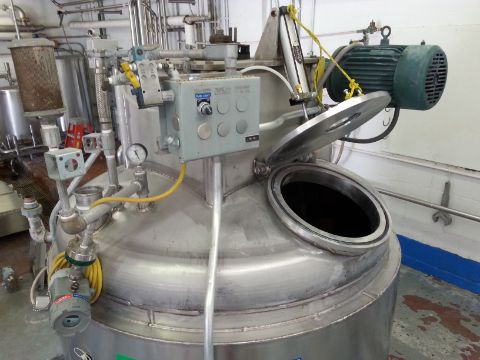 400 GALLON S/S DOME TOP & CONE BOTTOM VACUUM TANK, COMPLETE WITH PROP STYLE AND SCRAPE SURFACE AGITATION, MOUNTED ON METTLER TOLEDO LOAD CELLS WITH DIGITAL READOUTS (LOCATED IN ILLINOIS)***LDP***