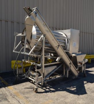 A.C. Horn Heat And Control Surecoat Drum Breader, Model DB-36,S/N DB9912003304 S/S. Approximate 36" Diameter X 70" Long Drum With Lifters. Horizontal And Inclined Screw Feeder, End Belt Discharge. Manual Incline Adjustment. Unit Hydraulically Driven, No Power Pack. ***AMJC***