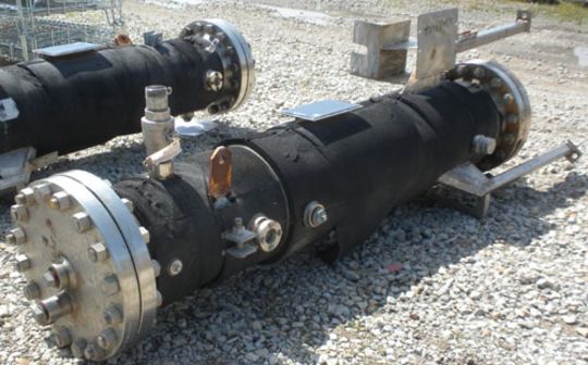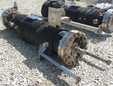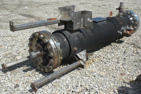2005 Superior Fabricators Single Pass Heat Exchanger, 42 Square Feet, 316L S/S, Vertical. 14-7/8’’ Diameter x 75-7/8" Shell Rated 600 psi at –20 to 200 Deg F, with a 48" Long Section of Jacket Rated 335 psi at –20 to 200 Deg F, (54) ¾’’ Diameter x 48-1/4’’ Long Tubes Rated 600 psi at –20 to 200 Deg F, Internal Pipe Connecting Tubesheets to Form a “Downcomer” for an Agitator Impeller, 4’’ Diameter x 46-7/8’’ Long, Provision for an Agitator, Openings: Heads .687’’, 1-1/2’’, 2’’; Tubes (3) 1/2’’, 2’’, (2) 2’’ Sightglass; Jacket (3) 1/2’’, (2) 2’’, Mounted on 3 S/S Legs (Located in Illinois)***AMJC***