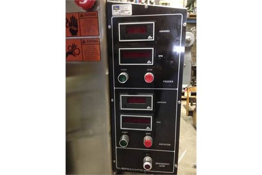Aeromatic Extruder M# E-140, Feeder Motor Specs: 1/2 HP, 1800 RPM, 230 Volt, 3 Phase, 60 Hz, Agitator Motor specs: 1 Hp, 3600 RPM, 230 Volt, 3 Phase, 60 Hz.