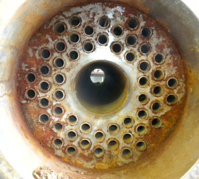 2005 Superior Fabricators Single Pass Heat Exchanger, 42 Square Feet, 316L Stainless Steel, Vertical. 14-7/8" Diameter x 75-7/8" Shell Rated 600 psi at 20 to 200 Degree F, with a 48" Long Section of Jacket Rated 335 psi at 20 to 200 Degree F. (54) 1/4" Diameter x 48-1/4" Long Tubes Rated 600 psi at 20 to 200 Degree F, Internal Pipe Connecting the Tubesheets to Form a Downcomer for an Agitator Impeller, 4" Diameter x 46-7/8" Long. Provision for an Agitator, Openings: Heads .687", 1-1/2", 2"; Tubes (3) 1/2", 2", (2) 2" Sightglass; Jacket (3) 1/2", (2) 2", Mounted on 3 S/S Legs (Located in Illinois)***AMJC***