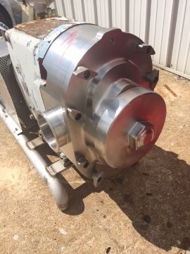 Waukesha 220 Positive Displacement Pump, S/N 143419, 4" Tri-Clamp Style S/S Head, 20hp Motor Mounted on S/S Frame (Located in KY & Rigging included in Sales Price)***JWLS***