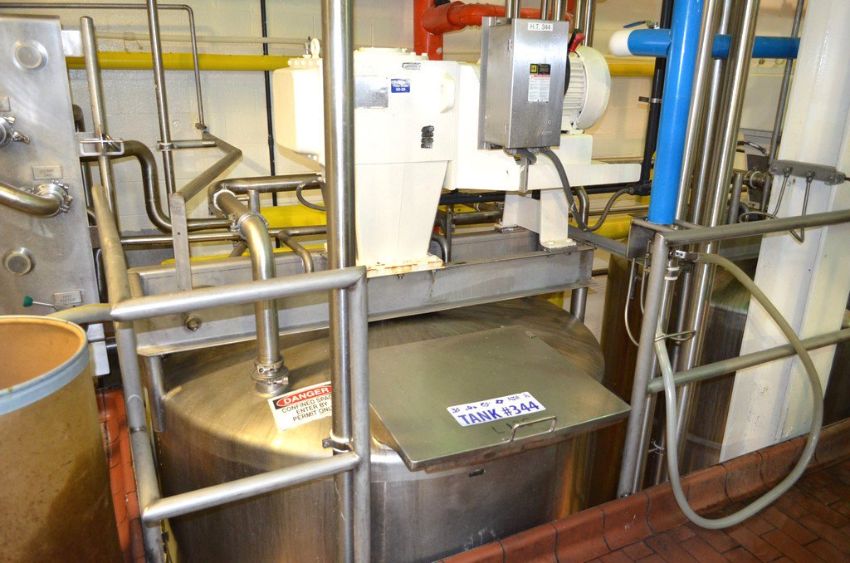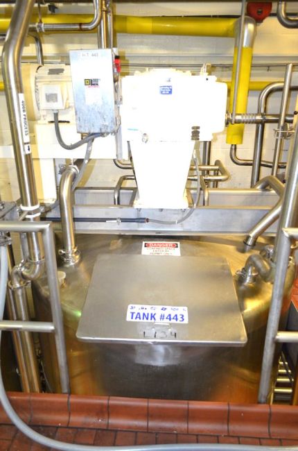 1,600 Gallon Dome Top Dish Bottom Vertical S/S Mixing Tank, 3" Center Bottom Outlet, 30" x 16" Top Manhole, Interior Baffles with Bridge Top Mounted 25 HP Lightnin Agitator (Located in North Carolina)***FBEV***