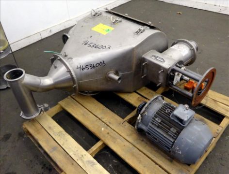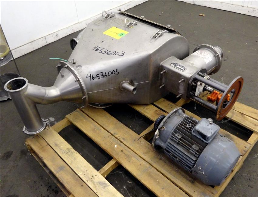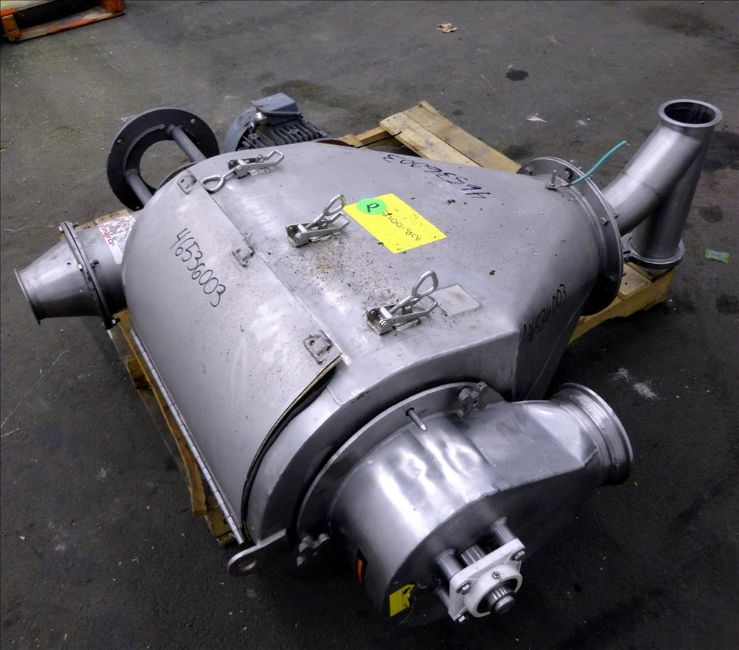 Kason Centri-Sifter, S/N M0-SSC100-16, 304 S/S, Approximately 10" Diameter X 22" Long Screen With (4) Helical Blades, Approximately 8" Diameter X 10" Long Screw Feed, Driven By An Approximate 5hp Motor, Side Access Door, 6" Top Feed, 6" End Overs Outlet, 10" Fines Outlet, (Located in Illinois)***AMJC***