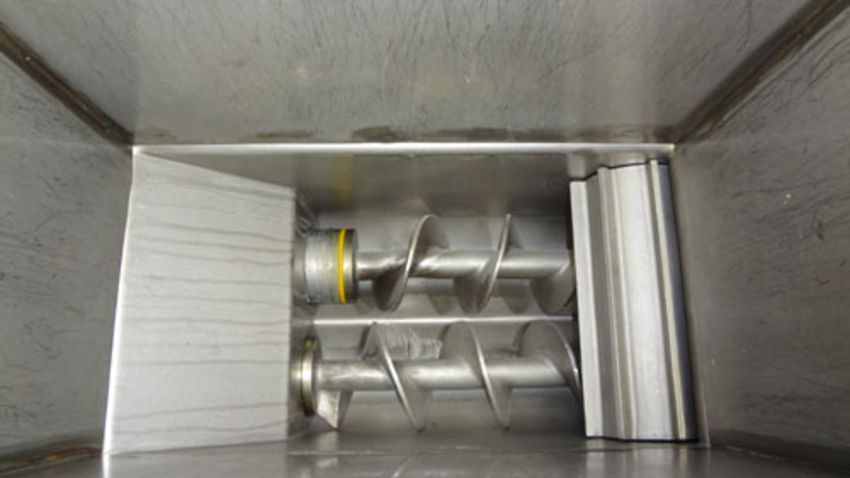 C. Doering & Sons Pumping Feeding System, Model 3PF, 304 S/S, Consists of: (1) Inlet with Hopper with (2) Approximately 5-3/4" Diameter x 24" Long Screws, Driven by a 2 HP, 3/60/208-230/460 Volt, 1775 rpm Motor Through an SM-Beier Variator, Speed Range 0.23 to .076, into (1) Waukesha Rectangular Flange Positive Displacement Pump, Model 34, S/N 7914, Rated Approximately 24 GPM, 0.60 Gallon Displacement Per Revolution, Driven by a 1-1/2 HP, 3/60/200-230/460 Volt, 1730 RPM Variable Speed Motor, Mounted on a S/S Frame with Casters (Located in Illinois)***AMJC***