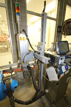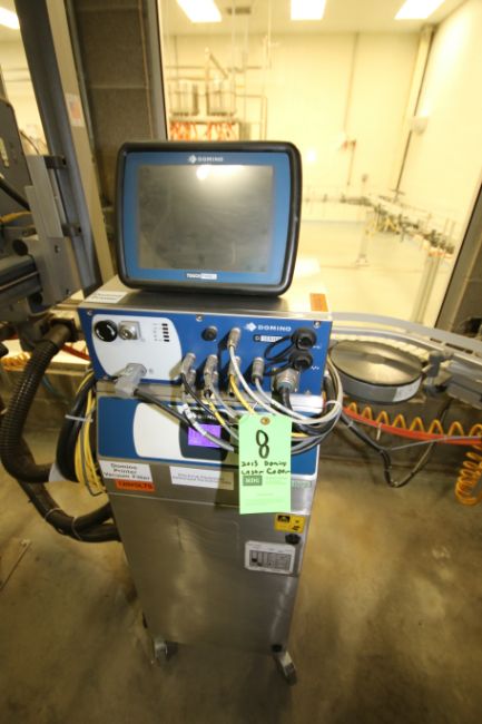 2012 Domino Laser Coder, Model BCP7-D320i+ip43+ETX-BB2.0, S/N S120569-01934M-0412C with Touchpad Display, includes D120i Blue Head, S/N S170733HV0512L - Mounted on Stand and Domino Vacuum Filter, Model DPX1000, S/N15869