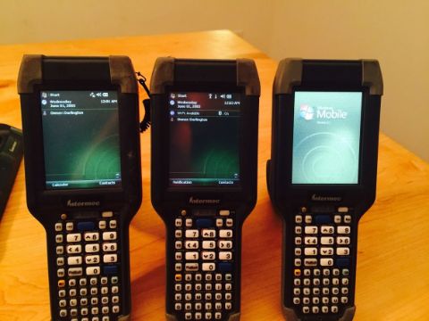 (4) Intermec Hand-Held Mobile Computers/Scanners, Type CK3 includes Battery Charging Station, (5) Battery Packs, (3) Hand-Held Gun Attachments, (2) Rugged Cases with Full Screen Protection and Instruction Manual, All Running on Windows 6.1 Model# CK3a1, CN:CK3B20M00E100
