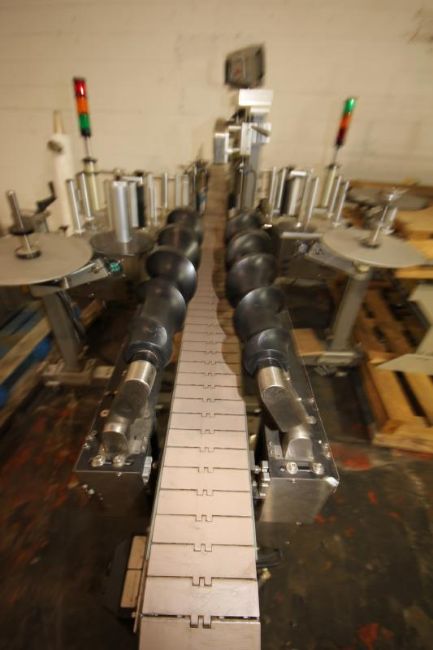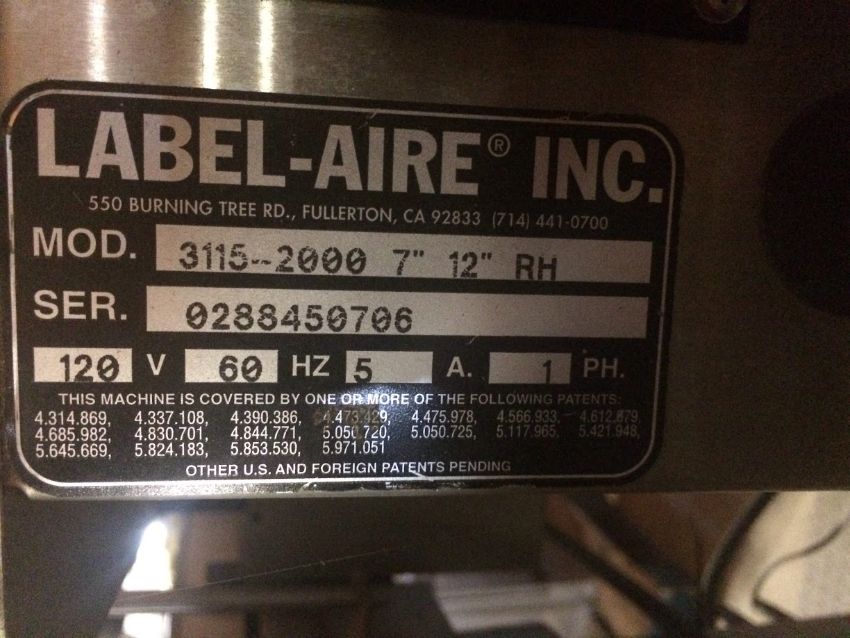 2007 Label-Aire 2-Station Inline Labeler, Model 3115-2000 7 inch 12 inch RH, S/N 0288450706 with Dual Feed Screws, Label Sensors, Rex Conveyor Chain includes Allen Bradley MicroLogix 1100 PLC, PanelView 300 Micro Touchpad Display and Mitsubishi Melsec PLC Controller, Servo Driven, 120 V, Single Phase includes 500 ml, 1 L and 1 Gal. Change Parts, Recently Serviced by Label-Aire