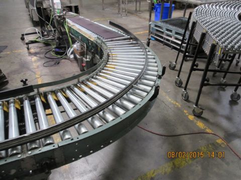 Hytrol Roller Conveyor 24" Wide 180° U-Turn, Used for Case Outfeed Serial# 1594850