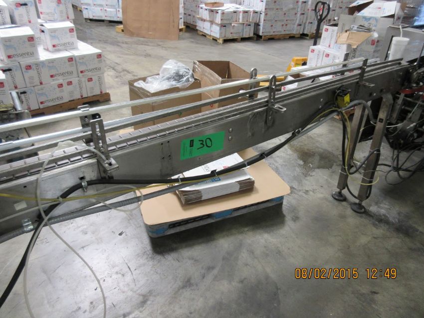 Aprox. 14 ft. L S/S Product Conveyor System with 3.25" W Plastic Table Top Chain includes Straight Sections, (1) 90° Turn, Side-Rails, Leg Supports and (1) Drive