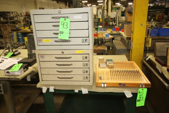 Pin Gauge Sets - .061/.50 B Minus Series; .251/.500 C Minus Series; .051/.625 D Minus Series; .626/.750 E Minus Series; .751/.832 F Minus Series located in (20) Metal Cabinets and .061 to .250 Model M Minus Series with Wood Case