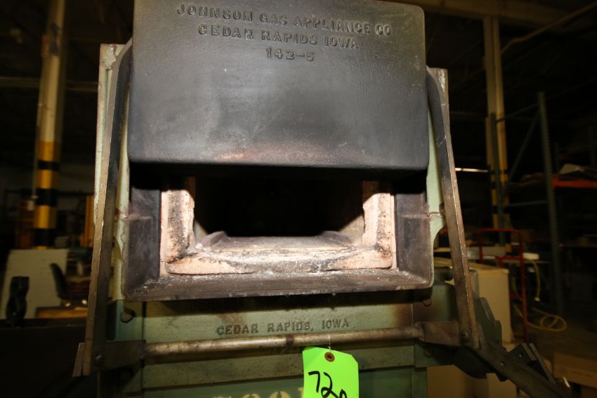Johnson Gas Appliance Co. Natural Gas Lab Furnace, S/N 4-20-77, Furnace #C-142F4, BTU/Hr. Input 180.000, Opening Dimensions Approx.. 11" W x 7" H x 19" Deep with Quench Tan and (2) Tongs (LOCATED IN IOWA, FOB INCLUDED WITH SALE PRICE, ADDITIONAL CHARGES FOR ANY REQUESTED SPECIAL PACKAGING/SKIDDING) ***EUSA***