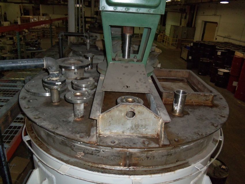 (2003) Modern Welding -- 1100 gallon stainless steel jacketed tank with sweep agitation Max Working Pressure 30 PSI at 200 F -- Min. Design Metal Temp -20F at 30 PSI on four I-Beam Legs - 5 HP Drive Motor - Board Certification No. NB302 (LOCATED IN IOWA,