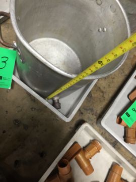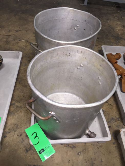 Lot of 2 Aluminum Pots -One with Opening Capped at the Bottom about 18" Diameter and 18" Deep(LOCATED IN IOWA, FOB INCLUDED WITH SALE PRICE, ADDITIONAL CHARGES FOR ANY REQUESTED SPECIAL PACKAGING/SKIDDING) ***EUSA***