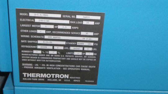 Thermatron Environmental Chamber with Programmable Controller and Manuals --Model #S-5.5-3800, Serial #34833 (LOCATED IN IOWA, FOB INCLUDED WITH SALE PRICE, ADDITIONAL CHARGES FOR ANY REQUESTED SPECIAL PACKAGING/SKIDDING)***EUSA**