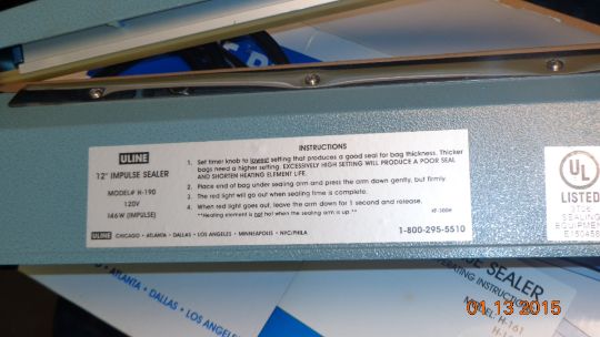 U-Line New in the Box Induction Sealer (LOCATED IN IOWA, FOB INCLUDED WITH SALE PRICE, ADDITIONAL CHARGES FOR ANY REQUESTED SPECIAL PACKAGING/SKIDDING)***EUSA**