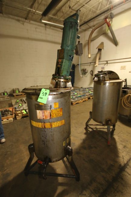 United Utensils Approx.. 23" W x 38" Deep S/S Mix Tank, S/N 9381-2-EVT-55-T-304-1988 with Lightnin 3-Prop Shaft Design Agitator, Model XJ0-30 with Hinged Lid (LOCATED IN IOWA, FOB INCLUDED WITH SALE PRICE, ADDITIONAL CHARGES FOR ANY REQUESTED SPECIAL PACKAG