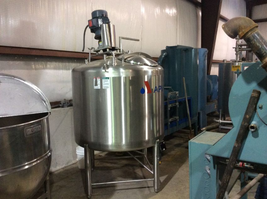 APV 330 Gallon High Shear Mixing Tank, S/N G-6360, inlet on top with vent & manway, 5 hp Motor, 1730 rpm 230/460, 8' Tall with Adjustable Legs x 4' Wide, 2 1/2" Outlet on Bottom with 4" Inlet and Outlet (Located in KY & Rigging included in Sales Price)