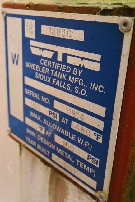 2011 Wheeler Ammonia Vertical Low Temp Accumulator, S/N 11814, Board #15830