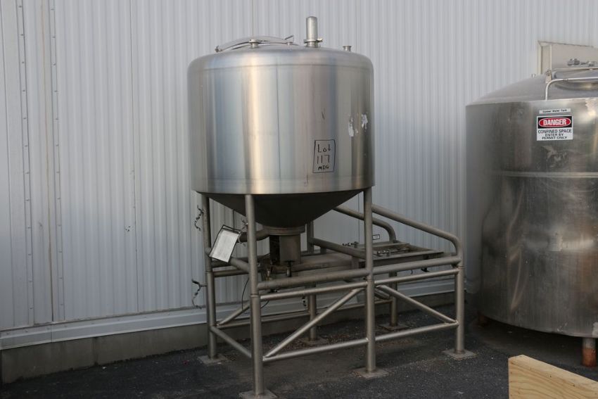 Breddo Aprox. 300 Gal. Dome-Top Cone-Bottom S/S Likwifier, Model LOR, S/N 250967-4 00129, Set-Up for Offset Motor and Drive, includes S/S Impeller and Sprayball - Dimensions Aprox. 34" H x 53" Dia.) (NOTE: Does Not Include Motor and Drive) (N/N W: 078850) (Located in Little Chute, WI)