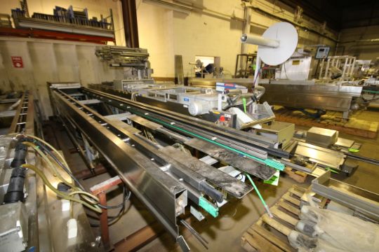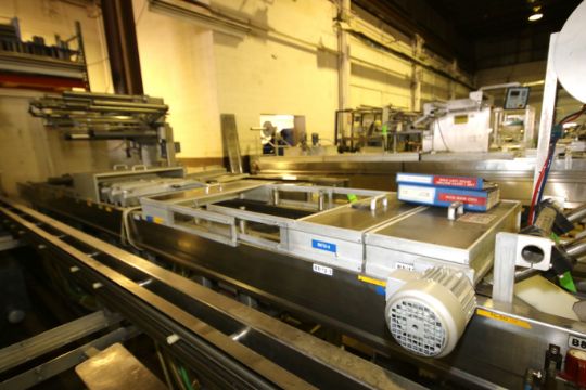 2000 MultiVac R530 Horizontal Form, Fill and Seal Vacuum Packaging Machine, S/N 1908 with Busch 15 hp Vacuum Pump, Type RA-0400, S/N C0525, Onboard Busch Booster Back-Up Pump, Spare Lift, Controls - 220 V, 3 Phase, Square D 45 KVA Transformer - Consists of (2) Sections - Main Machine Dimensions Aprox. 20 ft. L x 4 ft. W x 6 ft. 7" H and Second Section Aprox. 21 ft. 5" L x 3 ft. W x 40" H (Note: Does Not Include Touchpad Display) (South Multivac) (Tag #1151424)